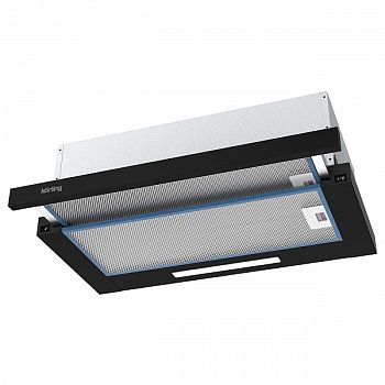 Встраиваемая с выдвижным экраном, ширина 60 см, мощность 550 м3/ч., 2 режима, механическое (клавишное) управление, алюминиевый жировой фильтр, LED освещениe , цвет панели - черный