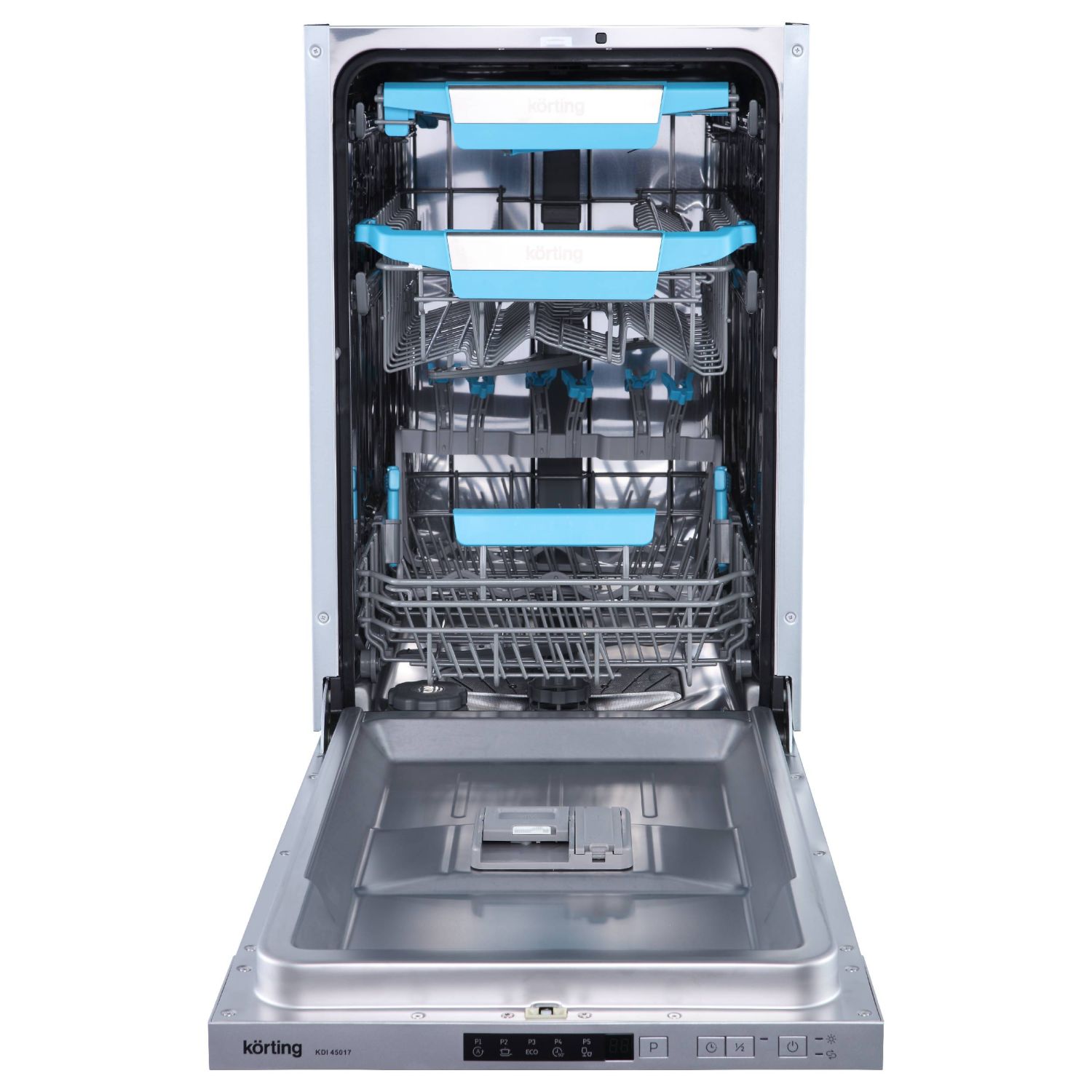 Мебельная фурнитура Фурнитура Blum Мойки кухонные ЛДСП / МДФ Столешницы и комплектующие Акриловый камень Grandex Внутреннее наполнение для кухни Компакт-плита HPL Профиль Алюминиевый PREMIAL Ручка профиль GOLA Бытовая техника Опоры и подстолье Комплектующие для шкафов Цокольные системы Система Joker Электрика Универсальная фурнитура Мерч и Образцы Прочие механизмы Матрасы ортопедические (под заказ) Каркасная мебель Loft0Встраиваемая посудомоечная машина, 45 см KDI 45017ХарактеристикиОписаниеАртикул 60323Артикул поставщика 00000020102Под заказ ДаШирина встраивания (см) 45Инверторный мотор НетКоличество корзин 3Конструкция ВстраиваемаяБазовая единица штДисплей ЕстьБыстрый цикл ЕстьЗащита от протечек ЕстьПроизводитель KortingПосудомоечная машина KDI 45017 – это современный и функциональный встраиваемый бытовой прибор шириной 45 см. Обладая компактными размерами, модель предлагает пять наиболее востребованных программ работы, включая автопрограмму, которая автоматически выбирает все необходимые параметры мойки для ежедневной очистки любых типов посуды с различными видами загрязнений. Машина оснащена тремя корзинами и держателем для бокалов; система регулировки высоты Easy Lift позволяет увеличить пространство в нижней корзине, чтобы разместить объемные предметы, такие как противень и кастрюли. Прибор оборудован цифровым дисплеем. Особая функция «Луч на полу» проецирует световой индикатор на пол во время выполнения программы и отключает его по завершении процесса мойки, что помогает визуально определить момент окончания программы. Посудомоечная машина поддерживает комбинированные моющие средства в одной таблетке «All in 1». Для повышения удобства в повседневном использовании предусмотрена функция половинной загрузки, позволяющая мыть небольшое количество посуды с минимальным расходом воды и электроэнергии. Также поддерживается функция отложенного старта от 1 до 24 часов. Благодаря инновационной форме разбрызгивателей «S-Form» потоки воды равномерно распределяются по всей камере, эффективно удаляя загрязнения с посуды на всех уровнях. Прибор обеспечивает полную защиту от протечек благодаря системе AquaControl. Кроме того, предусмотрено автоматическое открывание дверцы с функцией Dry Plus для более эффективного высушивания посуды. Модель имеет класс энергопотребления A++ и отличается низким уровнем шума – всего 47 дБ.