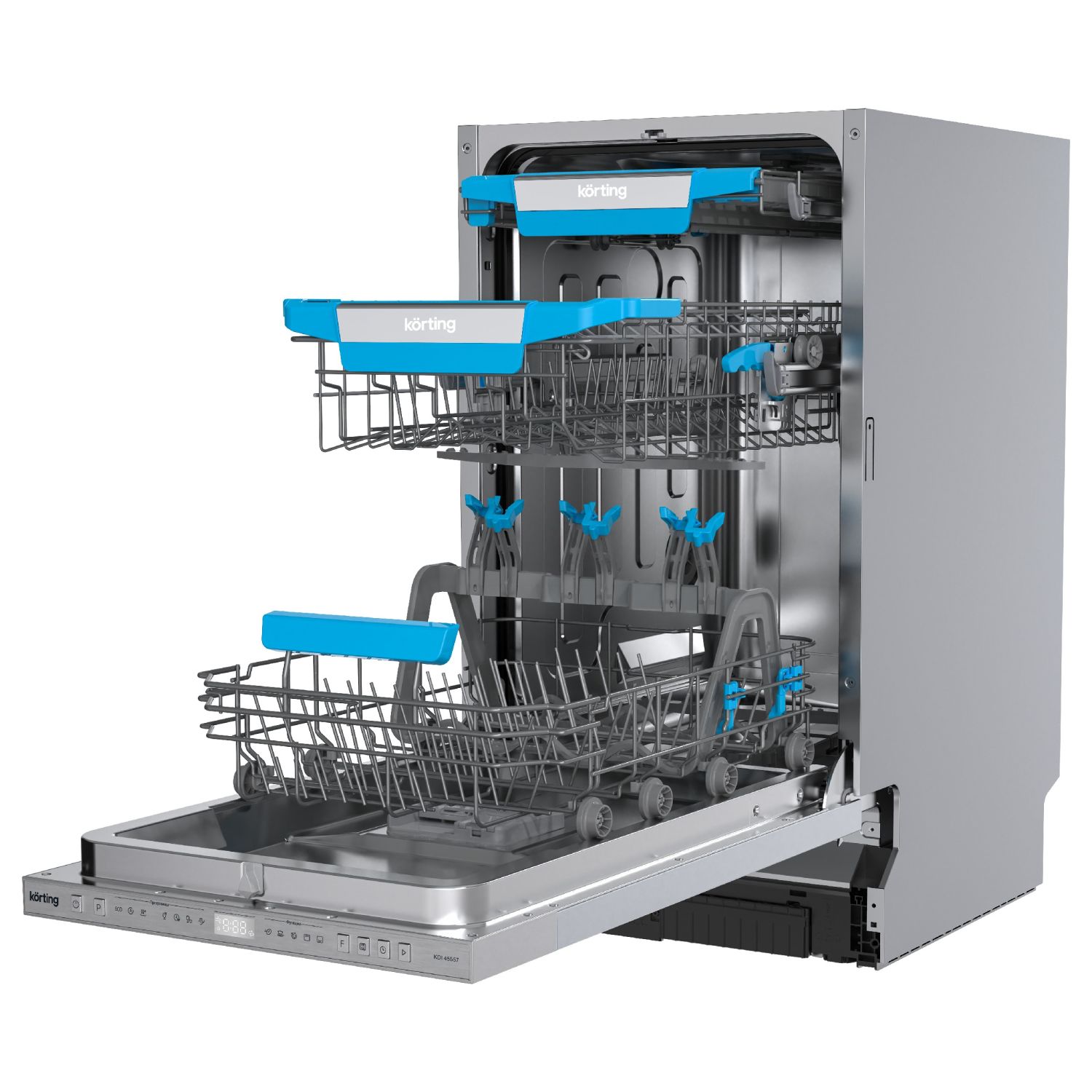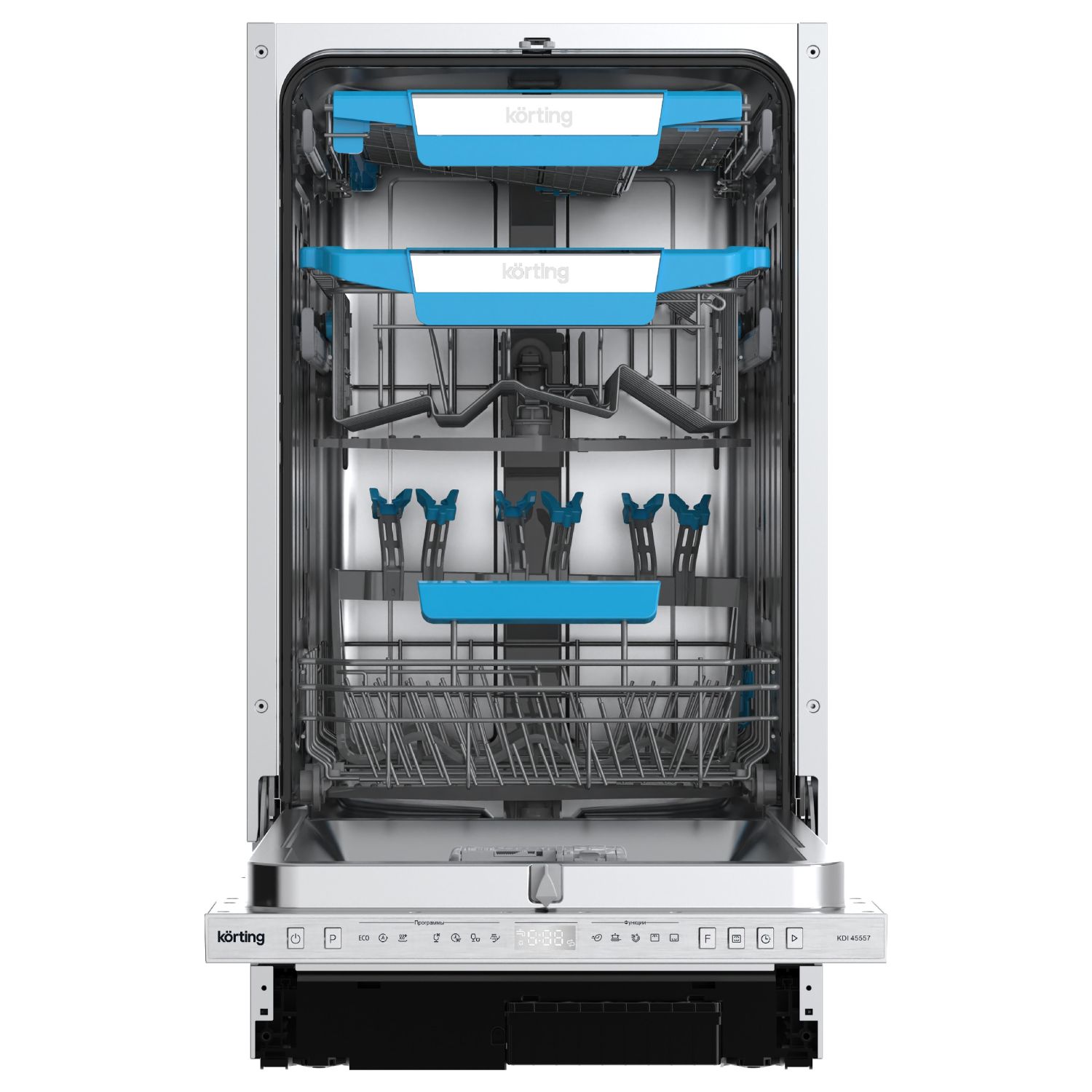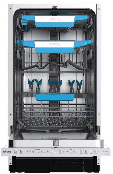 Мебельная фурнитура Фурнитура Blum Мойки кухонные ЛДСП / МДФ Столешницы и комплектующие Акриловый камень Grandex Внутреннее наполнение для кухни Компакт-плита HPL Профиль Алюминиевый PREMIAL Ручка профиль GOLA Бытовая техника Опоры и подстолье Комплектующие для шкафов Цокольные системы Система Joker Электрика Универсальная фурнитура Мерч и Образцы Прочие механизмы Матрасы ортопедические (под заказ) Каркасная мебель Loft0Встраиваемая посудомоечная машина, 45 см KDI 45557ХарактеристикиОписаниеАртикул 60337Артикул поставщика 00000020595Под заказ ДаШирина встраивания (см) 45Инверторный мотор НетКоличество корзин 3Конструкция ВстраиваемаяБазовая единица штДисплей ЕстьБыстрый цикл ЕстьЗащита от протечек ЕстьПроизводитель KortingПолновстр., 45 см, 10 компл., третья корзина для столовых приборов, А++/A/A, Электронное управление, цифровой LED дисплей белого цвета Cold White, 7 программ, LED освещение камеры, Автоматическая программа, Функция "Луч на полу" с цифровой индикацией, Функция двузонной мойки Dual Zone, Активная сушка, Функция дополнительной сушки, программа Гигиена, Режим «Экспресс мойка», Режим «Интенсивная мойка», Отложенный старт: 1-24 часа, Разбрызгиватели S-Form, Потолочный разбрызгиватель, Регулировка высоты корзины Easy Lift, Использование средств "All in one", Система полной защиты от протечек AquaControl, Ур.шума 47 дБ, тестер для определения жескости воды, держатель для бокалов