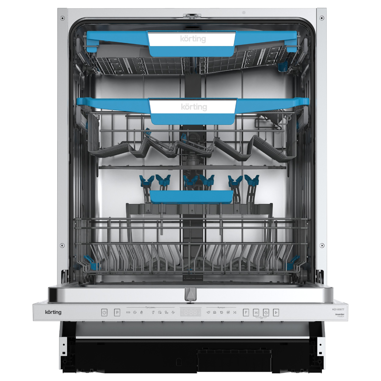 Мебельная фурнитура Фурнитура Blum Мойки кухонные ЛДСП / МДФ Столешницы и комплектующие Акриловый камень Grandex Внутреннее наполнение для кухни Компакт-плита HPL Профиль Алюминиевый PREMIAL Ручка профиль GOLA Бытовая техника Опоры и подстолье Комплектующие для шкафов Цокольные системы Система Joker Электрика Универсальная фурнитура Мерч и Образцы Прочие механизмы Матрасы ортопедические (под заказ) Каркасная мебель Loft0Встраиваемая посудомоечная машина, 60 см KDI 60877ХарактеристикиОписаниеАртикул 60326Артикул поставщика 00000020598Под заказ ДаШирина встраивания (см) 60Инверторный мотор ЕстьКоличество корзин 3Конструкция ВстраиваемаяБазовая единица штДисплей ЕстьБыстрый цикл ЕстьЗащита от протечек ЕстьПроизводитель KortingПолновстр., 60 см, 14 компл., Инверторный мотор, третья корзина для столовых приборов, А+++/A/A, Электронное управление, цифровой LED дисплей белого цвета Cold White, 7 программ, Направляющие для корзин Easy Glide, Автоматическая программа, Функция "Луч на полу" с цифровой индикацией, Автоматическое открывание двери по окончанию программы Dry Plus, LED освещение камеры, Активная сушка, Baby Care - программа мойки детской посуды, Режим «Экспресс мойка», Функция Турбо+, Функция дополнительной сушки, Отложенный старт: 1-24 часа, Разбрызгиватели S-Form, Потолочный разбрызгиватель, Регулировка высоты корзины Easy Lift, Функция половинной загрузки, Использование средств "All in one", Система полной защиты от протечек AquaControl, Ур.шума 44 дБ, тестер для определения жескости воды, держатель для бокалов