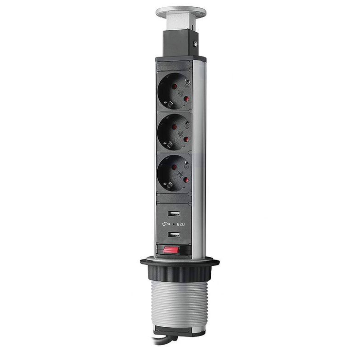 11.103.09.012 Блок розеток выдвижной вертикальный POP UP Compact, 3 розетки 2USB, 250В, СЕРЕБРО