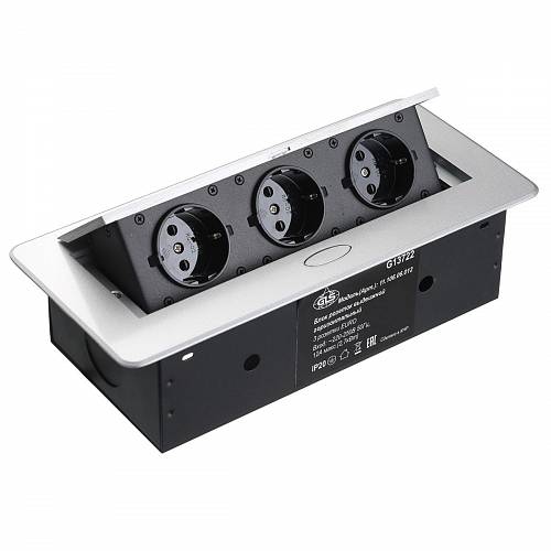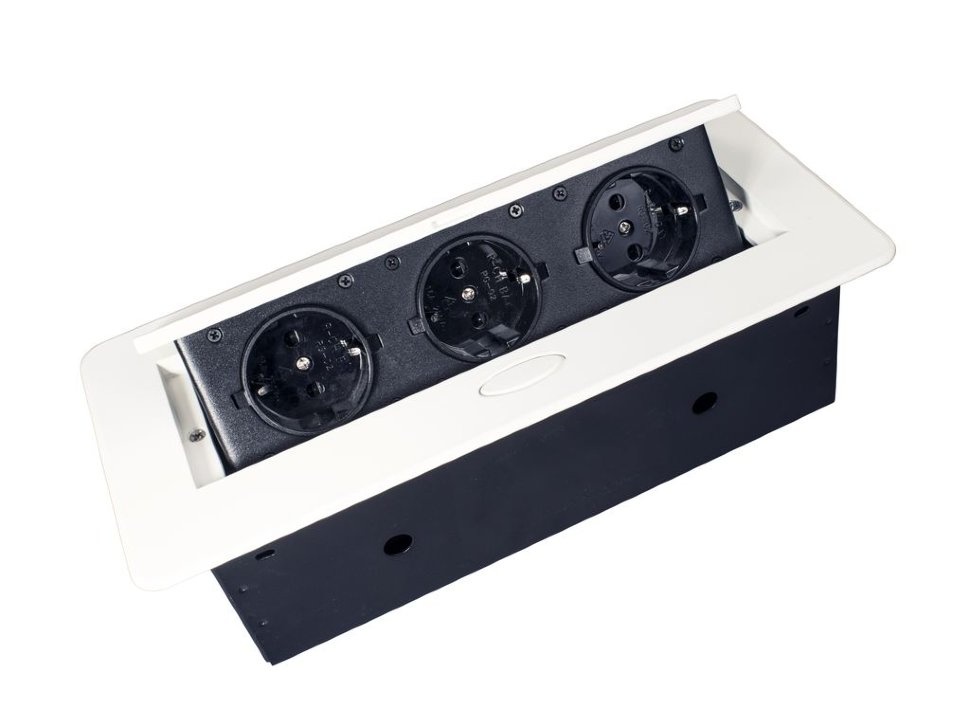 11.800.02.018 Блок розеток выдвижной горизонт, 3 розетки EURO, 250В, max 2700Вт, белая, розетки чер