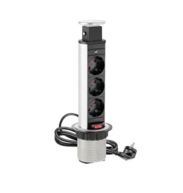 11.103.08.012 Блок розеток выдвижной вертикальный POP UP Compact, 3 розетки, 250В, D=60мм СЕРЕБРО