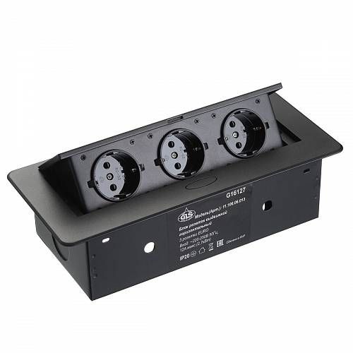 11.106.06.013 Блок розеток выдвижной горизонт, 3 розетки EURO, 250В, max 2700Вт, ЧЕРНЫЙ, кабель