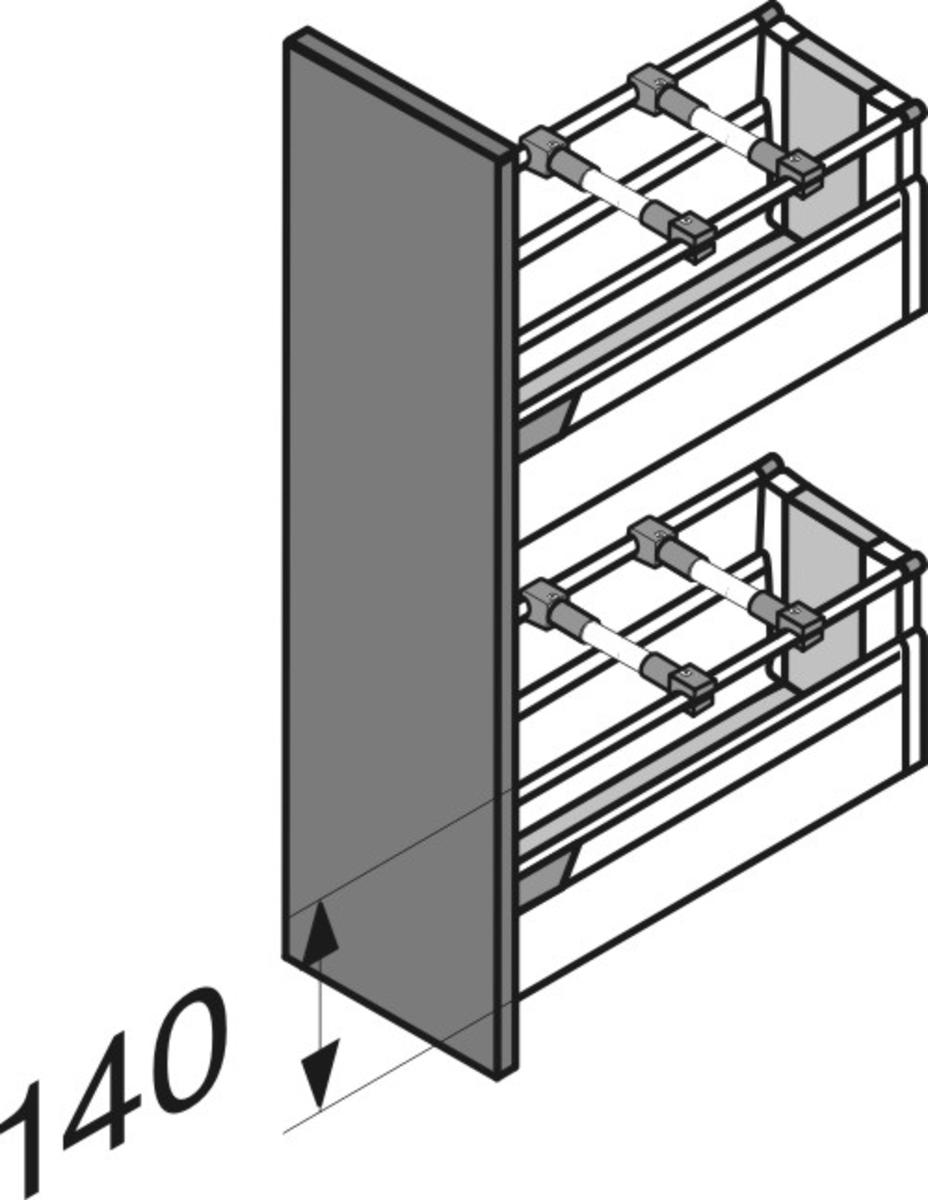 Tip-on blumotion* Ящик с высоким фасадом TANDEMВOX Plus-Царга"М"- высота "D"-1релинг(224мм)сер 400мм