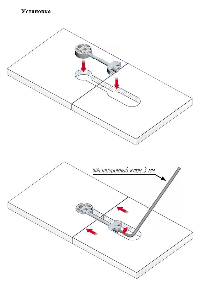 Комплектация: стяжка — 2 шт., фиксирующий винт — 2 шт., ответная часть — 2 шт.