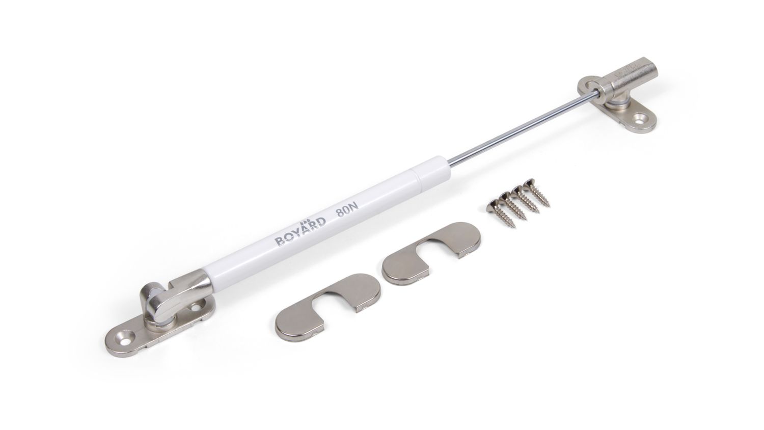 В комплект входит: 1 газлифт, 2 крепежных кронштейна, 2 заглушки в цвет корпуса, инструкция, 4 самореза 3,5*16 мм в цвет держателя.