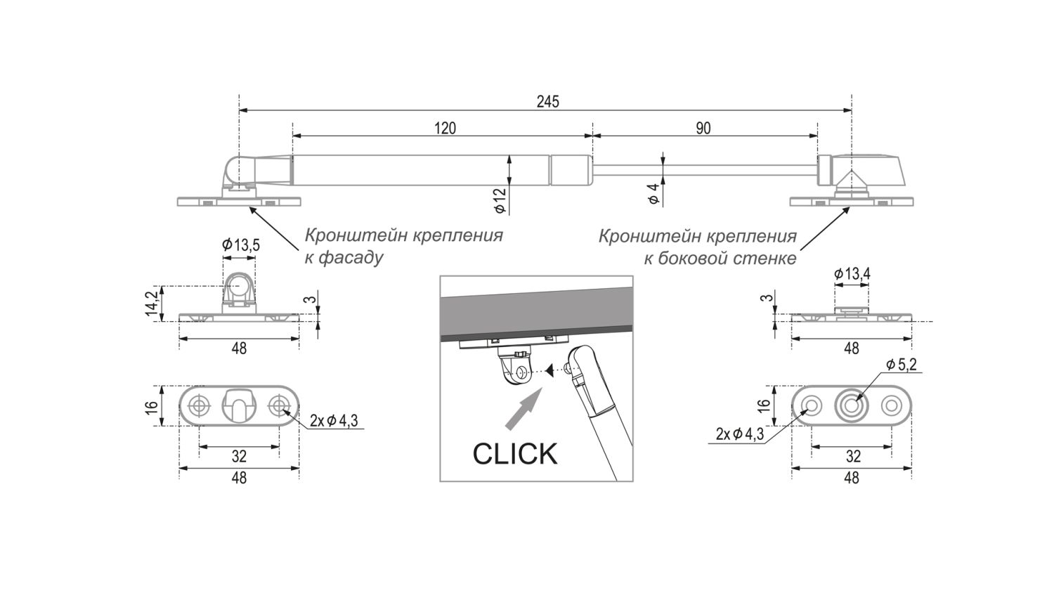 GL107 легко крепится к держателю фасада способом Clip-On — простым защёлкиванием. Декоративные заглушки в цвет газлифта (идут в комплекте) закроют крепёжные элементы и обеспечат завершённый, аккуратный вид
