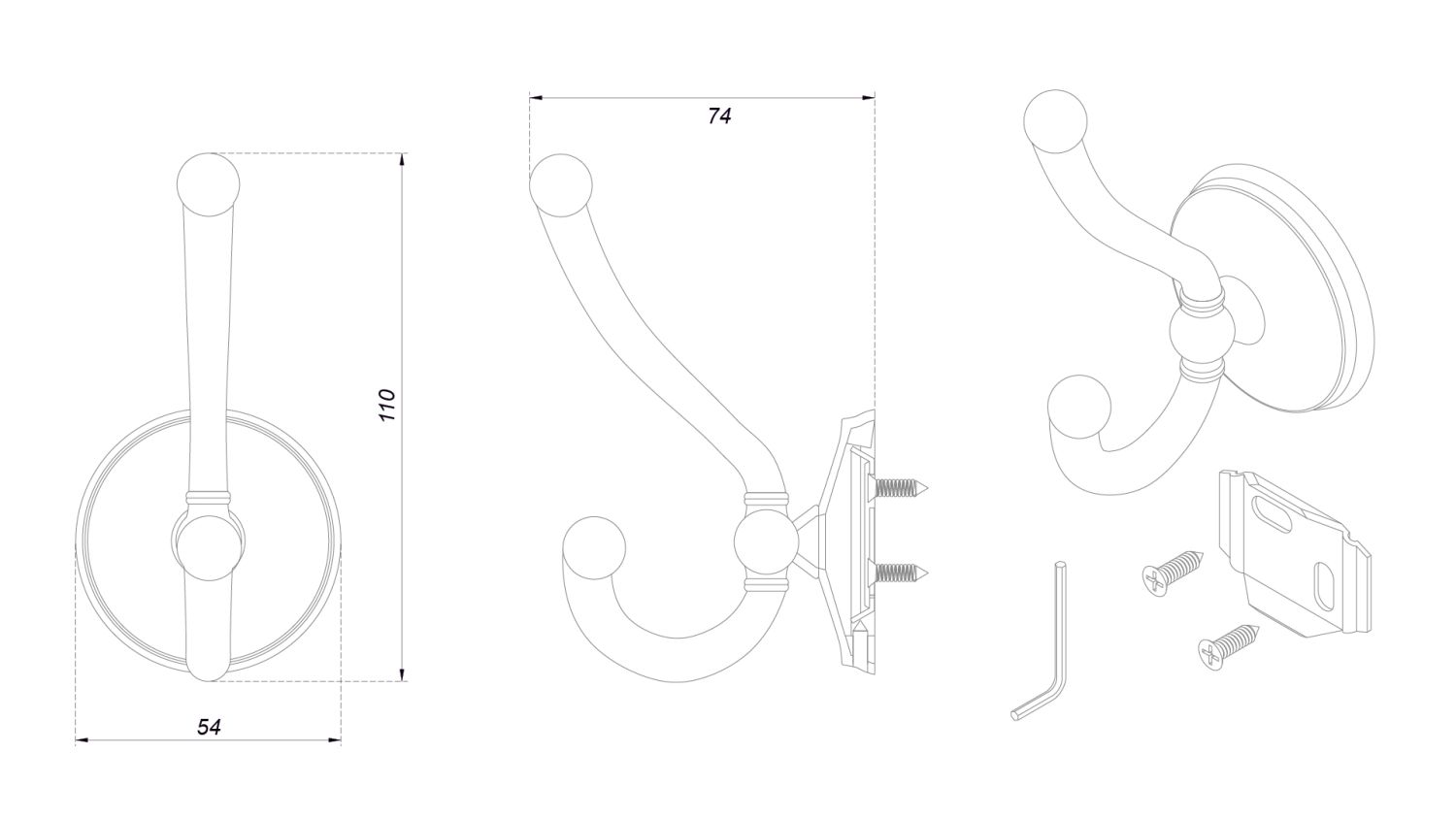 Особенности: крепёжная планка, фиксирующий винт, ключ шестигранный, саморез 4*18 - 2 шт.