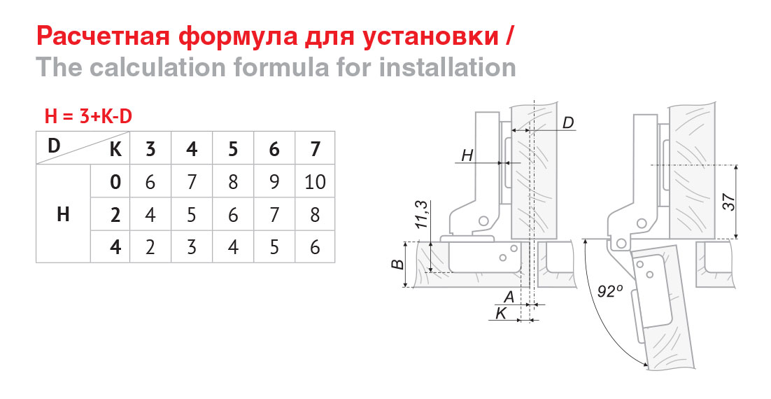Угол открывания: 92°