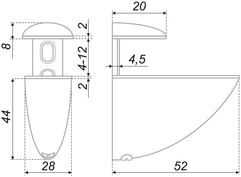 Толщина полки: до 12 мм